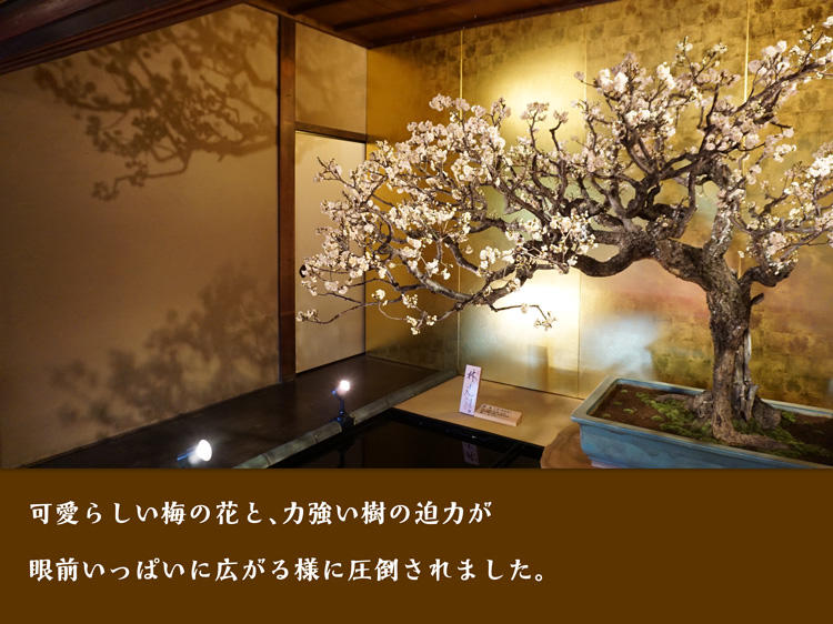 樹齢数百年という古木と、学生の若い感性がコラボし、普段と違った盆梅の様子を見ることができます。