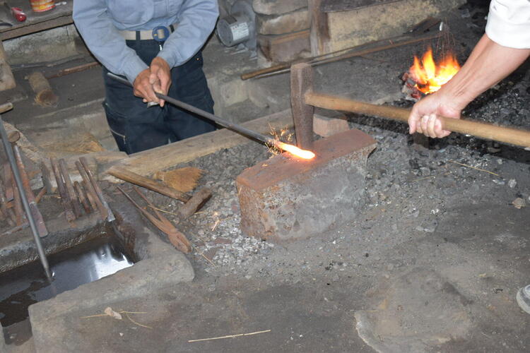 大槌が振り下ろされ、金属音と共に火花が飛び散る様子は見ごたえがあります。