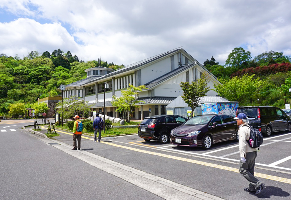 岩根山の中腹に建つ天然温泉の日帰り温泉施設「十二坊(じゅうにぼう)温泉ゆらら」で昼食休憩。その昔、岩根山には12の僧坊があったため、岩根山は別名「十二坊」と呼ばれることから、この温泉名が付いたそうです。昼食時間はフリースタイルで、芝生で弁当を広げる人や、レストラン「地料理まつした」で過ごす人やら。この日はGWの初日。館内にある温水プールが今日から営業がスタートということで、浮き輪を持った家族連れなども立ち寄っていました。