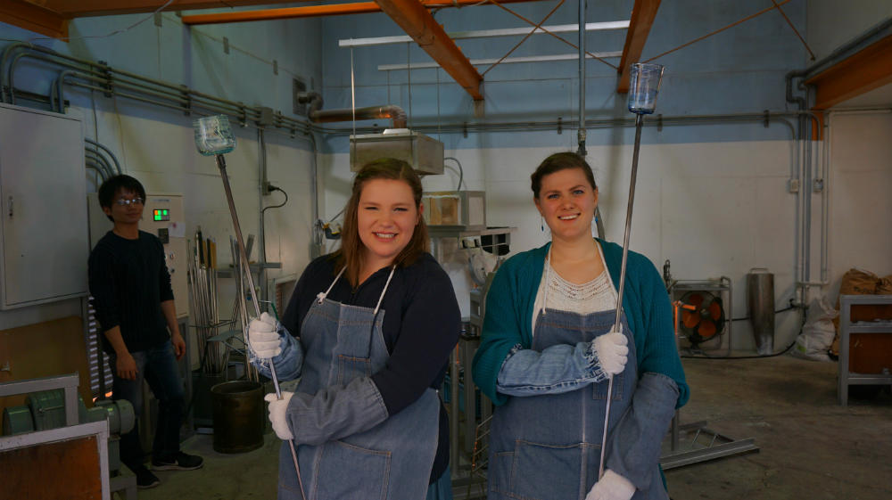 とても熱いガラスを扱うのは初めてだったので、最初は少し怖かったですが、細かく指導してもらえたので、思い通りのコップを作ることができました。