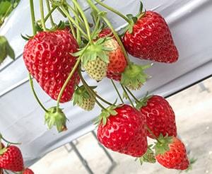 整然と並んだ爽やかなグリーンの列の中に、キラキラしたいちごが鈴なりでーす♪♫
