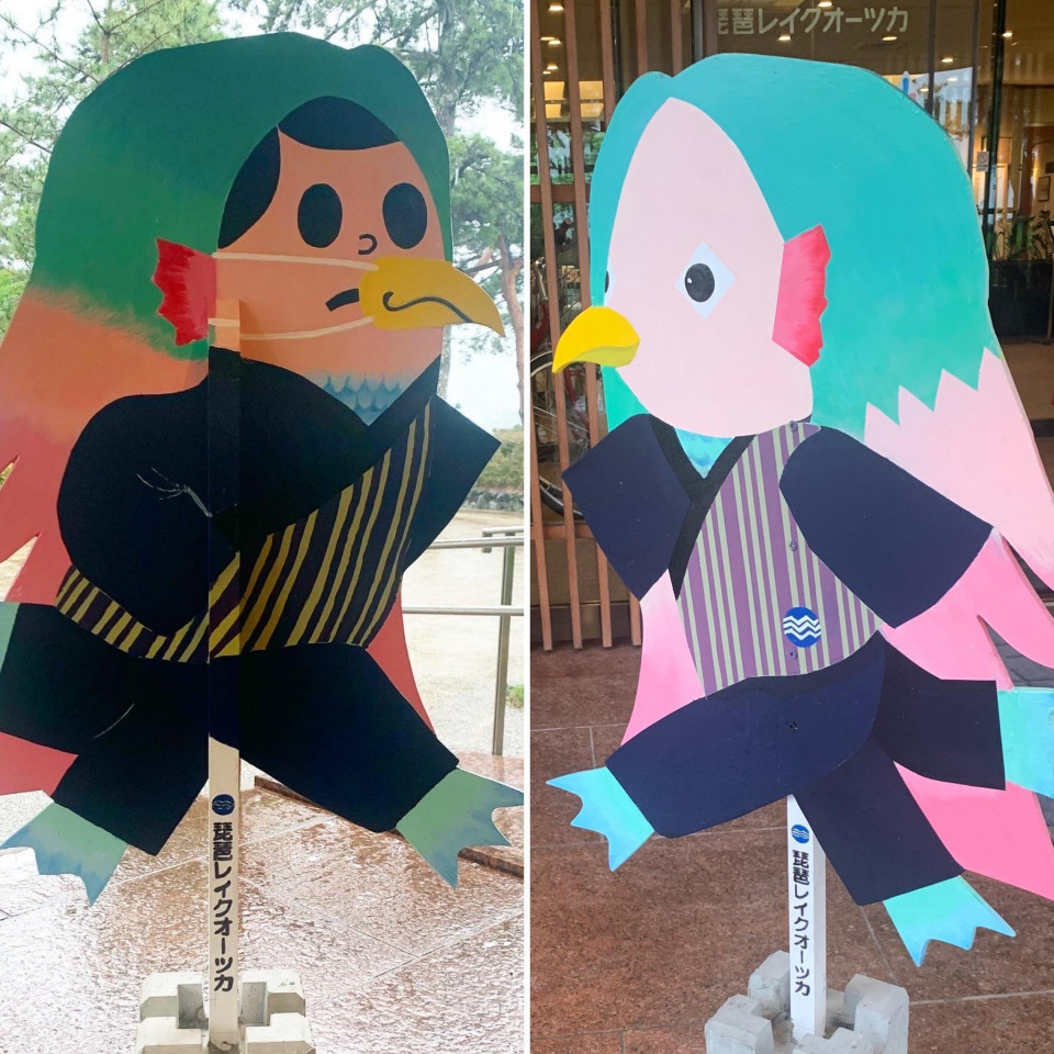滋賀県が発祥とも言われている「飛び出し坊や」。 疫病退散と交通安全の願いを込めて、゙ホテル作務衣を着た「飛び出しアマビエ」をホテルスタッフにて製作、6月7日、ついに完成致しました! 表面(A面)は「アマビエさま」、裏面(B面)は「アマビエさまに扮した坊や」です。ホテル前に設置しておりますので是非見に来てください。