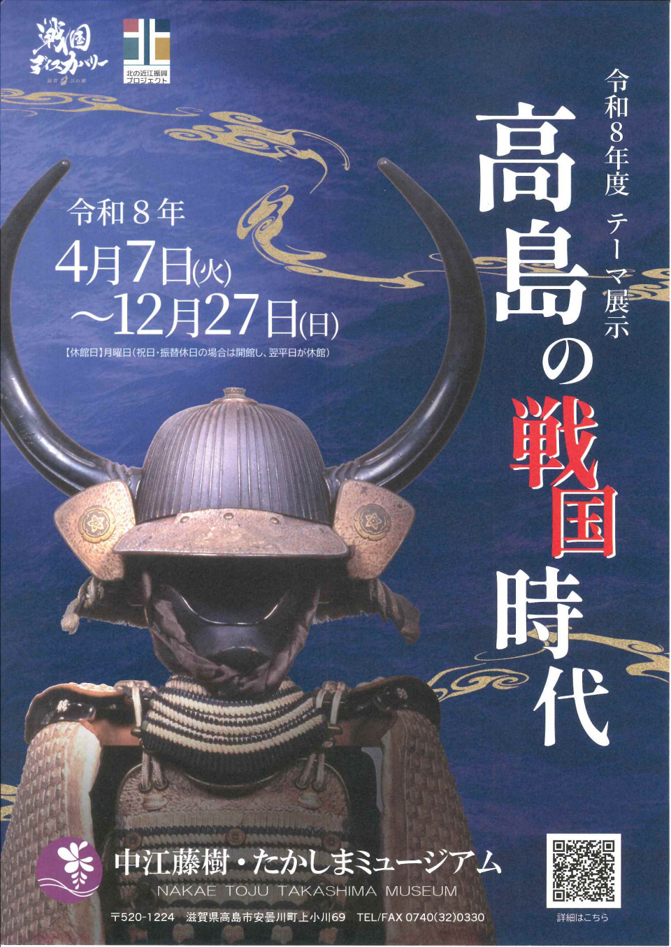 中江藤樹・たかしまミュージアムでは、令和8年4月7日(火曜日)から12月27日(日曜日)まで「高島の戦国時代」をテーマにした展示を行います。高島初展示の文化財など、ゆかりの品が勢ぞろいします。ぜひお越しください。